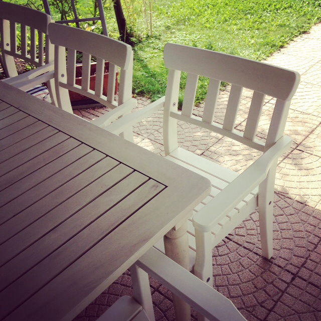 Drei Jahre nachdem wir den Gartentisch gekauft haben, sind endlich auch Stühle dazu gekommen und wir können die provisorischen Plastikstühle endlich entsorgen: