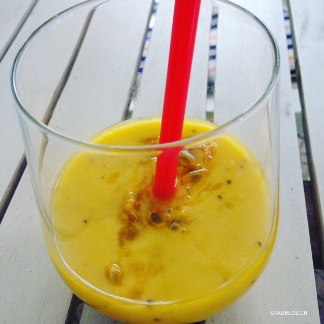 Ich habe mich auch diese Woche sehr in Gelassenheit geübt. Zum Beispiel als die Jungs mit ihren Trinkrörchen den Smoothie geblubbert haben. Ich habe Passionsfrucht reingemacht und das fanden sie total ekelhaft. Also sass ich da, übte mich in Gelassenheit und zählte bis etwa 385 bis ich es dann doch nicht mehr ausgehalten habe: