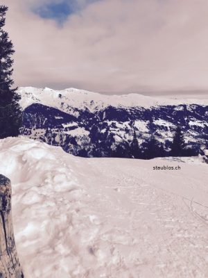 In Tschiertschen wurden wir von einer beachtlichen Menge Schnee empfangen, sie hatten 3.90m! Meine Alarmlichter „oh Gott, die Lawinengefahr“ blinkten schon hinter meinem zuckenden Augenlid. Und als wir auf den Shuttle (das Dorf ist Autofrei, oder einfach so fuckingunfassbar eng, dass kein Autofahrer ausser den Einheimischen dort durch kommt) warten um abgeholt zu werden, schaue ich, doofe Nuss, meine Emails an. Und zack, irgendwelche Probleme waren mit dem letzten Lohnlauf aufgetreten. Ich war ehrlich kurz davor das Smartphone in den nächsten Schneehaufen zu werfen! Habe stattdessen zuerst meiner liebsten Arbeitskollegin geschrieben, die schon Bescheid wusste und dabei war, das Problem zu lösen. Ich war trotzdem sehr genervt und meine Vorfreude auf Ferien war ordentlich angeschlagen. Hrmpf.