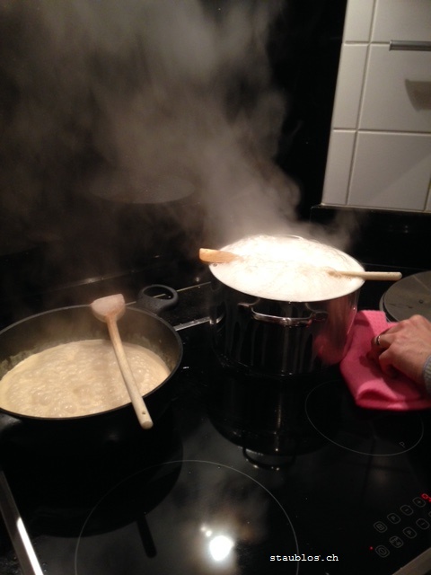 Dazu noch schnell auf Instagram, Twitter und Facebook meinen lieben Followern fröhliche Weihnachten gewünscht, das Nudelwasser dank dem neuen Induktionsherd 3mal innerhalb von 14min. überkochen lassen. Der Mann eilt mir zur Hilfe und rettet die Nudeln während ich unbedingt ein Foto machen muss… und er fragt dabei nicht ein einziges mal, ob ich das Smartphone nicht weglegen möchte…Friede-Freude und so.