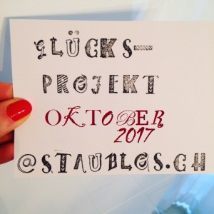 Den Rückblick kann man als Kommentar, einem Blogpost oder mit Fotos hier verlinken (mit verlinken meine ich ein Pingback zu meinem Blog) oder auf Instagram (#glücksprojekt2017 @staublos_ch verwenden, ansonsten kann ich es nicht sehen). Das Bild vom Glücksprojekt 2017 könnt ihr gerne mitnehmen. LeserInnen, die kein Blog schreiben, können natürlich jeweils unter meinem Post kommentieren.