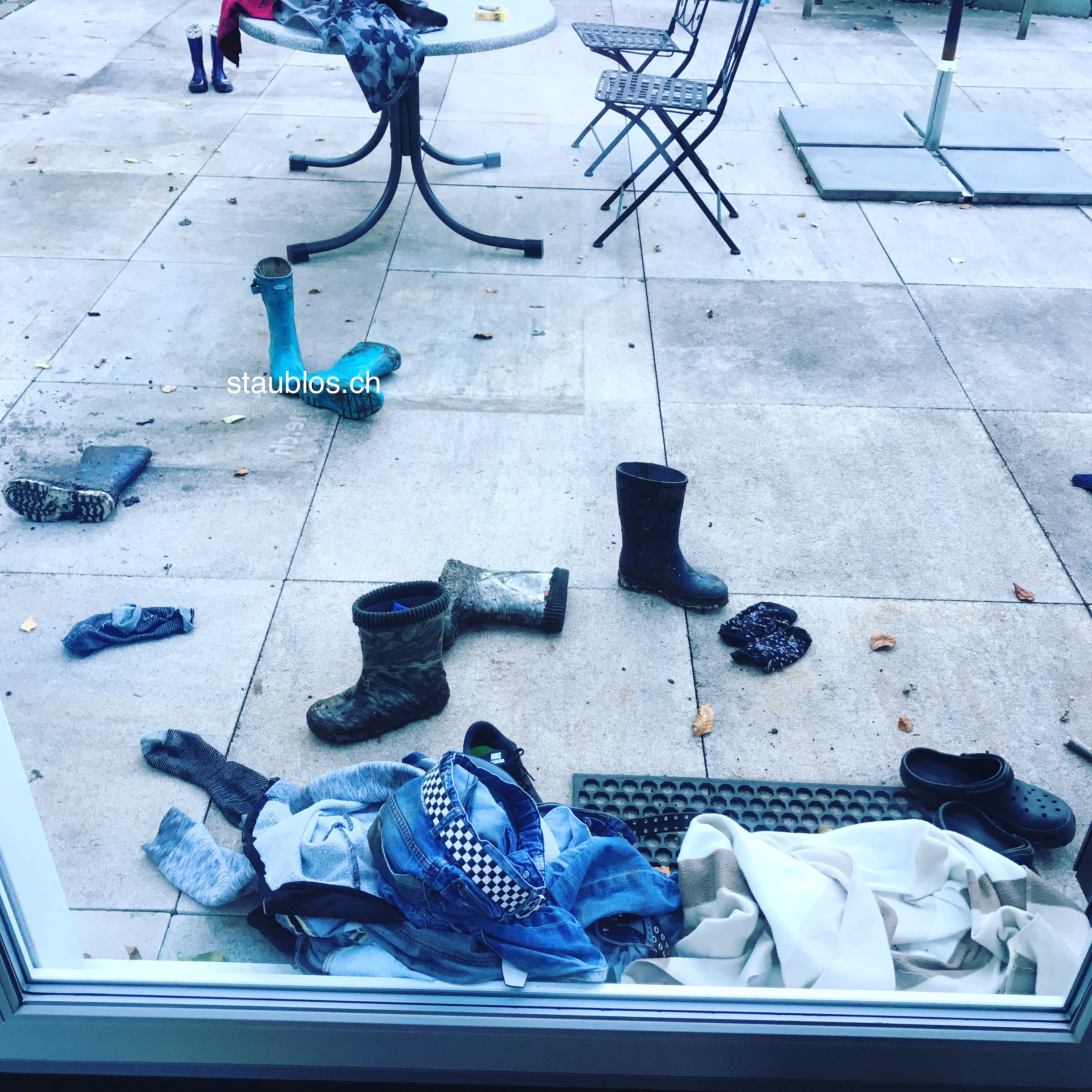 Als wir aus dem Haus mussten, haben alle nach einmaligem Auffordern ihre Schuhe und Jacken angezogen. Ich habe noch schnell die gewaschene Wäsche in den Tumbler geworfen und die nächste Ladung angemacht. Perfektes Timing.