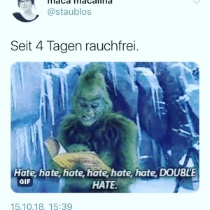 Jetzt gehe ich noch auf den Crosstrainer diese innere Unruhe wegstrampeln. Es fühlt sich noch immer etwas nach Ameisenkribbeln im Körper an und ich würde so gerne eine rauchen. Der Mann wird Abendessen kochen und ich werde mich dieses Jahr nicht vom Advent verrückt machen lassen. Auch nicht vor Weihnachten! Und jetzt muss ich nur etwas weniger Aufschieberitis betreiben! Und endlich diese &%ç*=)*(*/%-Skiferien buchen!